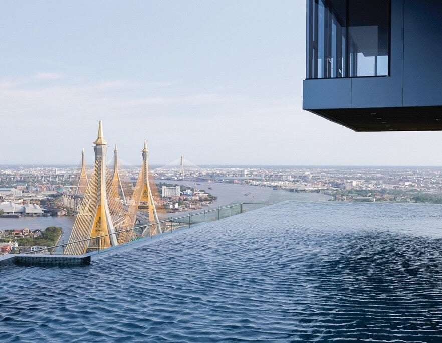 A newly completed high-rise condominium building over 44 floors with views of The Chao Phraya river and Rama III Bridge. It's located in Bangkok's fast growing Rama III area.
